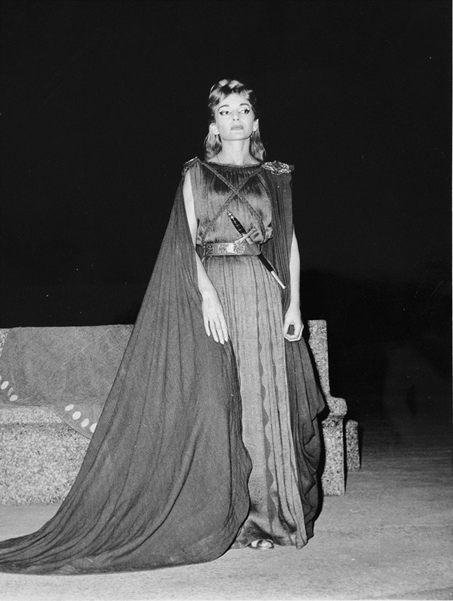 Η μεγαλύτερη λυρική καλλιτέχνις όλων των εποχών συνέπραξε με την Εθνική Λυρική Σκηνή, ερμηνεύοντας την όπερα του Βιτσέντζο Μπελίνι «Νόρμα», έργο το οποίο η ίδια είχε ζητήσει για το ντεμπούτο της στο αρχαίο θέατρο. Υποδύθηκε τον ομώνυμο ρόλο, υπό τις σκηνοθετικές οδηγίες του Αλέξη Μινωτή. Τη μουσική διεύθυνση είχε αναλάβει ο διάσημος Ιταλός διευθυντής ορχήστρας Τούλιο Σεραφίν, ο Γιάννης Τσαρούχης τα σκηνικά, ενώ ο Αντώνης Φωκάς τα κοστούμια.