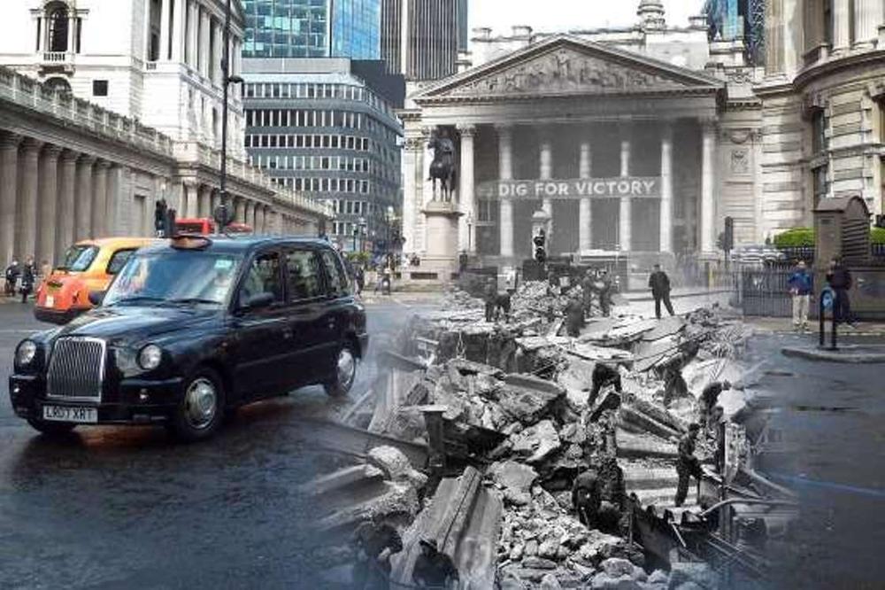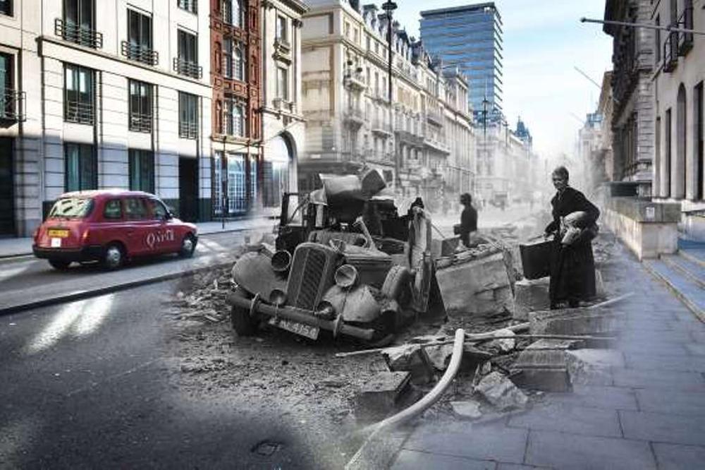 Φωτογραφίες της Βρετανικής πρωτεύουσας διχασμένες ανάμεσα στο σήμερα και το πολεμικό Λονδίνο.