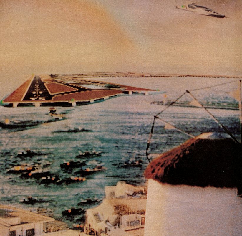 Τα ελληνικά νησιά διατήρησαν και στον 21ο αιώνα την παραδοσιακή τους αρχιτεκτονική εικόνα, τουλάχιστον στη γήινη επιφάνεια, παραμένοντας το μαστ των καλοκαιρινών διακοπών. Η προσέγγιση στη Μύκονο, για παράδειγμα, ακόμα και σε περίοδο αιχμής, ήταν πλέον πολύ απλή. Ιάπωνες αρχιτέκτονες και πολυεθνικές κατασκευαστικές εταιρίες έλυσαν το κυκλοφοριακό τζαμ των αιθέρων για όλο το Αιγαίο, δημιουργώντας μια αλυσίδα τεχνητών νησιών-αεροδρόμιων. Ξαφνικά το ελληνικό αρχιπέλαγος αυξήθηκε σε επιφάνεια αποκτώντας και τεχνητή υφαλοκρηπίδα. Τεράστιες πλατφόρμες-πεδιάδες από δια-μεταλλικά «έξυπνα» υλικά, μεγίστης αντοχής, αγκυροβόλησαν δίπλα στους, παλιάς τεχνολογίας, μώλους. Στηριγμένες σε γιγαντιαία υποθαλάσσια δικτυώματα, αποτέλεσαν τις μοντέρνες αεροπίστες που εξυπηρετούσαν τις υπερ-διογκωμένες κυκλοφοριακές ανάγκες. Στην ούλτρα-κοσμική Μύκονο όσοι κάθονταν στο Τεχνο-Caprice λίγο πριν το δειλινό κρατώντας στα χέρια smart-κοκτέιλς, αντί να χαζεύουν το ηλιοβασίλεμα παρακολουθούσαν τα αεροσλάλομς των Pelicans: Των νέων αεροπλάνων που τη συνέδεαν σε ελάχιστο χρόνο με το Λος Άντζελες ή το Τόκυο. Το πλωτό αεροδρόμιο, στα ανοιχτά του παλιού λιμανιού, δημιούργησε ένα τεχνητό φιόρδ που, συνδυασμένο με τον ανακαινισμένο λιμενοβραχίονα, προστάτευε σκάφη από τους ανέμους δίνοντας την αίσθηση μιας αιώνιας μπουνάτσας. Ενεργειακά αύταρκες, λειτουργούσε όλο το 24ωρο, δημιουργώντας τη νύχτα με τα φώτα και τους προβολείς του, ένα ντεκόρ ανταγωνιστικό με τα λέιζερ-εφφέ των κυβερνομπάρ του αυθεντικού νησιού. Ο ουρανομήκης πύργος ελέγχου, τοποθετημένος απέναντι από τους παλιούς ανεμόμυλους, ήταν ο Μεγα-Φάρος των Κυκλάδων ορατός σε όλα τα γύρω νησιά. Ένα τεχνολογικό θαύμα που το αντιμετώπιζαν με δέος, ευλάβεια και σεβασμό ακόμα και οι παραδοσιακοί ταξιδιώτες-προσκυνητές της Μεγαλόχαρης από τη διπλανή Τήνο.