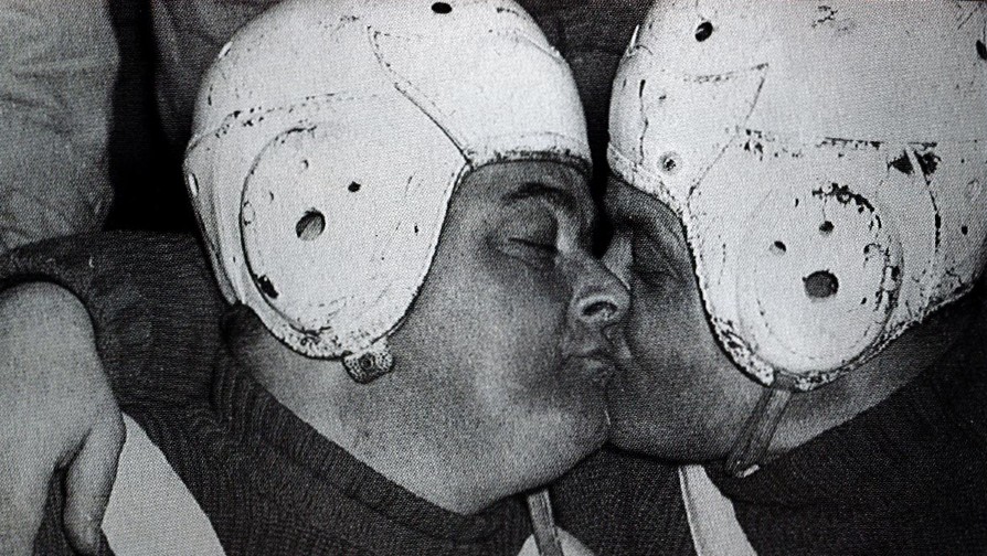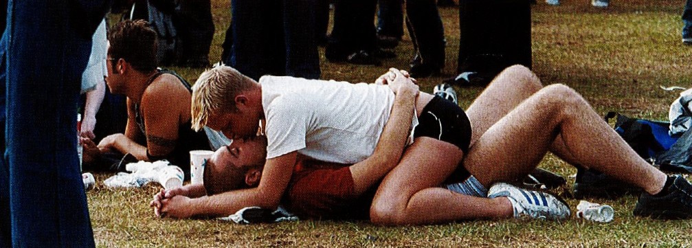 Μετά τη νίκη της ομάδας, το μόνο που θέλεις να κάνεις είναι να φορέσεις μία τσανάκα από εμαγέ στο κεφάλι, να αρπάξεις τους συναθλητές σου και να τους φιλήσεις για τα επινίκια. Η επιτάχυνση της νικηφόρας χαράς μπορεί να προκαλέσει κουτουλιές (εξ ου και η κατσαρόλα), ενώ ο κοινός ενδυματολογικός κώδικας αφαιρεί καθετί προσωπικό και δίνει στο φιλί έναν αέρα παγκοσμιοποίησης. Ιδιαίτερα αγαπητό στους χούλιγκαν αθλημάτων όπως «Ο Λαβύρινθος του Μικρούτσικου», «Σοκολατοπόλεμος Λιελιεπούτιων Καρναβαλιεστών στο Καρναβάλιε της Πάτρας» και «Μπιζ».