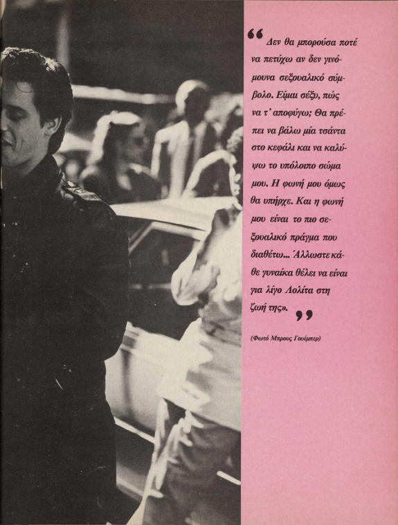 Την πρωτακούσαμε στο «Holliday» και μας χαζοάρεσε. Είπαμε: «Να, μια σωστή ντίσκο τραγουδίστρια που θα μπορούσε να επισκιάσει την Ντόνα Σάμερ». Η Σάμερ, παρόλο που δεν είχε πια επιτυχίες, κράταγε γερά ακόμη τον τίτλο της βασίλισσας της ντίσκο. Εκείνη την εποχή, πριν τέσσερα χρόνια, δεν υπήρχε καμιά σούπερ τραγουδίστρια. Μόνο κάτι γλυκανάλατες και ξενέρωτες, επιπέδου Μπόνι Τάιλερ.