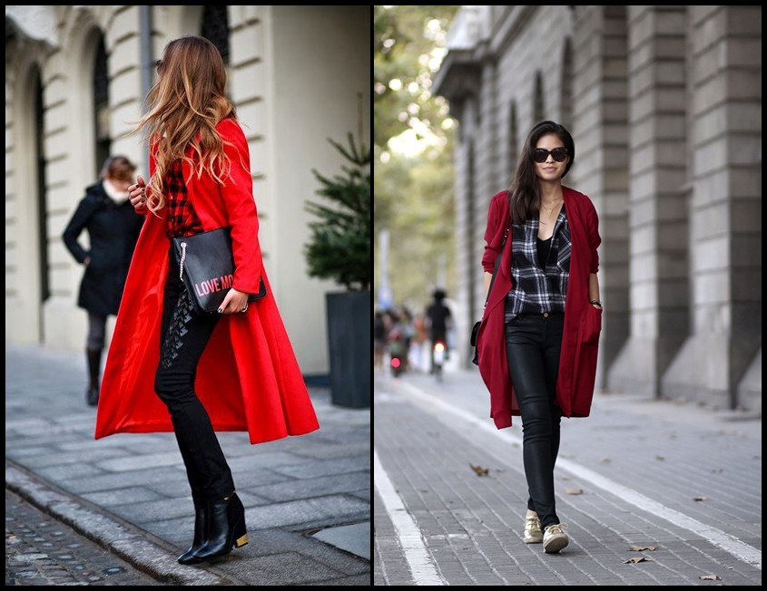 4. Κόκκινο Παλτό με καρώ πουκάμισο