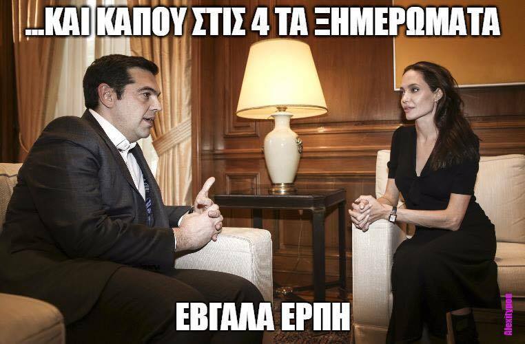 Τα 15 καλύτερα memes για τη συνάντηση του Αλέξη Τσίπρα με την Angelina Jolie, από τους χρήστες των κοινωνικών δικτύων! Από την Κατερίνα Χαμαλέλη