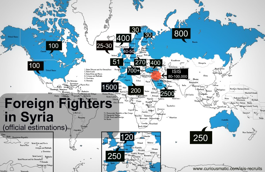 Συνολικά, 27.000 έως 31.000 ξένοι τζιχαντιστές που προέρχονται από 86 χώρες είναι παρόντες στη Συρία και το Ιράκ. “Ο αριθμός αυτός έχει υπερδιπλασιασθεί από την έκδοση της τελευταίας έκθεσης τον Ιούνιο 2014 και διαπίστωνε την παρουσία 12.000 ξένων τζιχαντιστών στις δύο χώρες, “παρά τις διεθνείς προσπάθειες για την αντιμετώπιση του Ισλαμικού Κράτους και τον περιορισμό της ροής των ξένων μαχητών προς τη Συρία”.