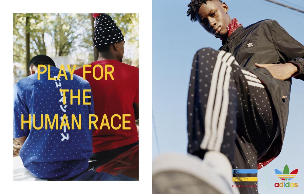 Τα adidas Originals και ο Pharrell Williams συνεχίζουν να εξυμνούν την ανθρωπότητα και τη διαφορετικότητα με το επόμενο κεφάλαιο της συνεργασίας τους, τη συλλογή Hu–εμπνευσμένη από τη σύντμηση των λέξεων human being (ανθρώπινο ον), human race (ανθρώπινη φυλή), humankind (ανθρωπότητα). Η νέα σειρά δημιουργήθηκε από το όραμα του Pharrell για ένωση των ανθρώπων μέσα από την αγάπη, το πάθος, την ενέργεια, και το χρώμα.