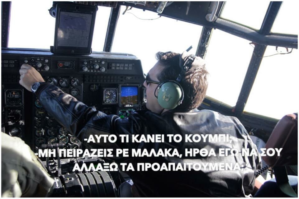 Αγαπημένο θέμα τους; Ο πρωθυπουργός με δερμάτινο τύπου Top Gun, που βρέθηκε στο πιλοτήριο ενός C-130 και το twitter ειδικά τον λάτρεψε… με τον δικό του τρόπο…