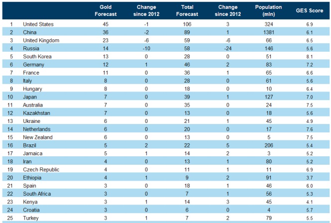 «Δεδομένου ότι η Ρωσία συγκαταλέγεται συνήθως στις πρώτες πέντε θέσεις των χωρών-κατακτητών μεγαλύτερου αριθμού μεταλλίων, ο αποκλεισμός αθλητών της από τους Ολυμπιακούς δύναται να επηρεάσει τις υπόλοιπες προβλέψεις σε μεγαλύτερο βαθμό, απ’ ότι αν επρόκειτο για μια μικρότερη χώρα».
