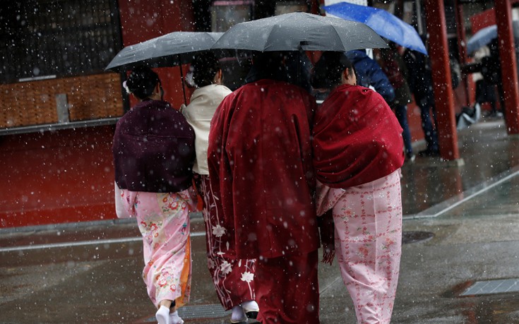 Μπορεί η κακοκαιρία να έχει πλήξει το μεγαλύτερο μέρος του πλανήτη, κάποιοι λαοί όμως την χαίρονται κατά κάποιον τρόπο. Ο λόγος για τους κατοίκους της ιαπωνικής πόλης, που κατάφεραν και είδαν την πόλη τους στα λευκά τον Νοέμβριο μετά από περίπου μισό αιώνα. Το Τόκιο είχε την πρώτη του χιονόπτωση ύστερα από 54 χρόνια και όλοι οι κάτοικοι έχουν βγει στους δρόμους και το απολαμβάνουν. Αν και αιφνιδιάστηκαν στην αρχή, καθώς οι θερμοκρασίες αυτή την εποχή κυμαίνονται από 10 έως 17 βαθμούς Κελσίου, ντύθηκαν ζεστά και βγήκαν μικροί και μεγάλοι να παίξουν με το χιόνι.
