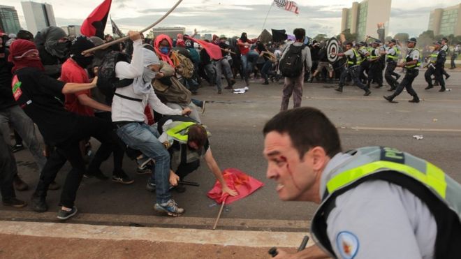 Στην πρωτεύουσα Μπραζίλια και σε άλλες μεγάλες πόλεις διοργανώθηκαν μεγάλες διαδηλώσεις με πολίτες που αντιτίθενται στα μέτρα λιτότητας που εξήγγειλε η κυβέρνηση. Ως είθισται οι διαμαρτυρίες ξέφυγαν και ξέσπασαν σοβαρά επεισόδια. Οι διαδηλωτές συγκρούστηκαν με την αστυνομία, έβαλαν φωτιά σε λεωφορείο, έσπασαν μαγαζιά και προκάλεσαν ζημιές σε δημόσια κτίρια.