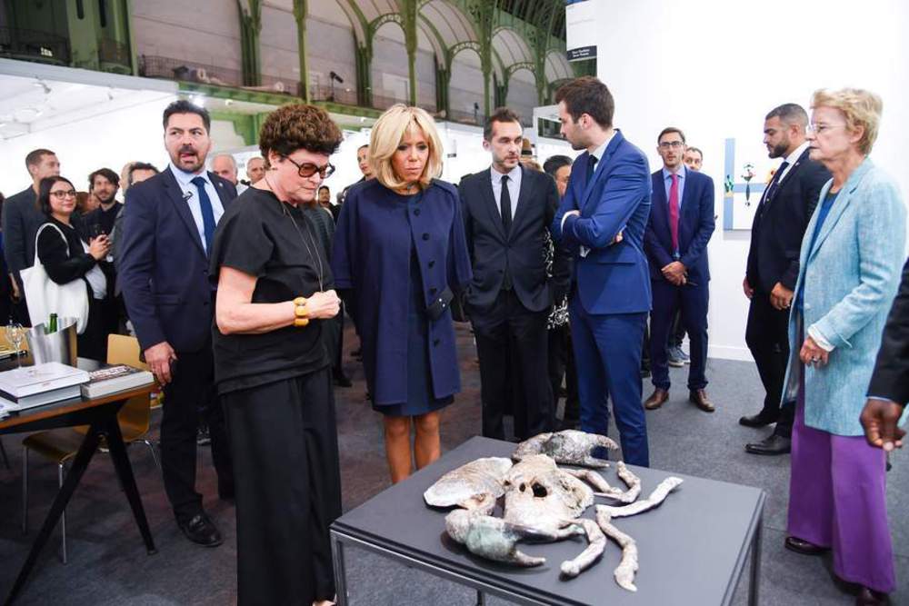 Tην περασμένη Τετάρτη η Brigitte Macron επισκέφθηκε το μουσείο του Λούβρου με την Κολομβιανή Πρώτη Κυρία, Maria Clemencia Rodriguez de Santos, πριν πάει μόνη το απόγευμα στο FIAC.