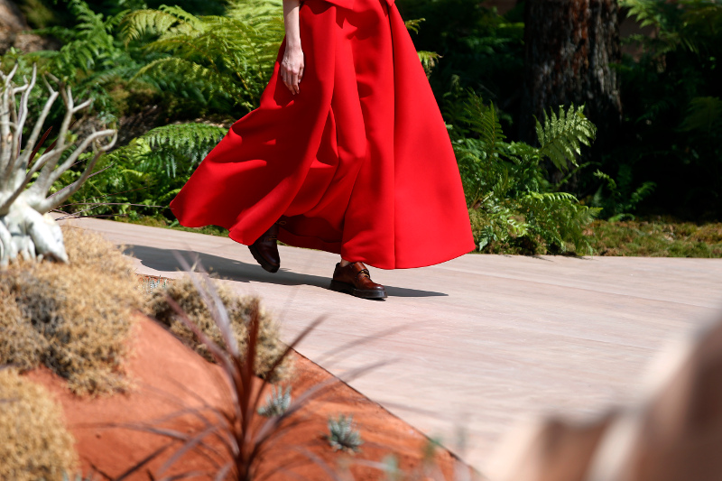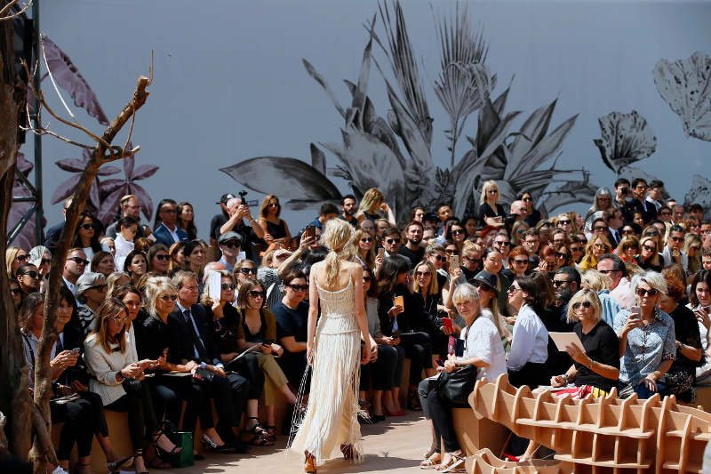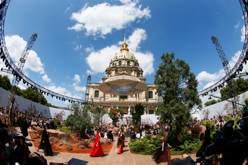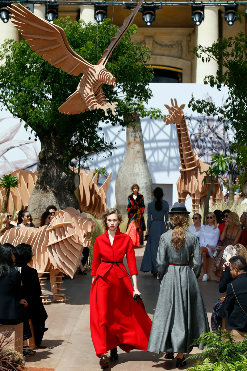 Η επίδειξη έγινε ανάμεσα σε εξωτικά δένδρα, γρασίδι, ξύλινους ελέφαντες, κροκόδειλους και αετούς.
