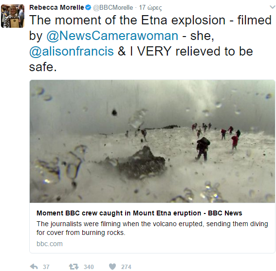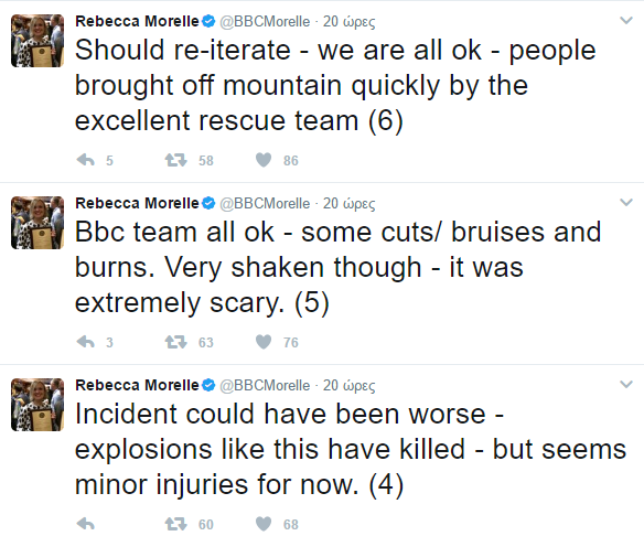 Όσοι βρίσκονταν στο ηφαίστειο την ώρα της έκρηξης έτρεχαν να ξεφύγουν ενώ εκτοξεύονταν λάβα, βράχια και πέτρες. “Αυτό ήταν υπενθύμιση του πόσο επικίνδυνο και απρόβλεπτα μπορούν να είναι τα ηφαίστεια. Σταθήκαμε τυχεροί και διαφύγαμε”, σημειώνει η Rebecca Morelle.