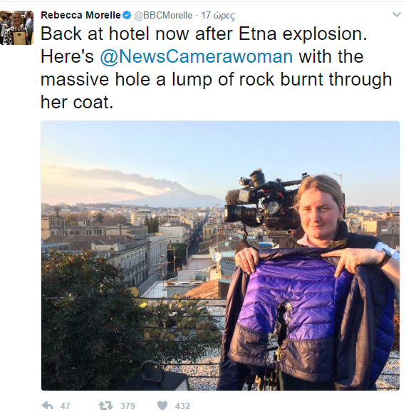 Η δημοσιογράφος του BBC Rebecca Morelle έγραψε στο Twitter πως εκτιμάται ότι έχουν τραυματιστεί 8 άνθρωποι από την έκρηξη της Αίτνας. Μια 78χρονη γυναίκα βρισκόταν πολύ κοντά όταν σημειώθηκε η έκρηξη αλλά κατάφερε να φύγει με ασφάλεια από το σημείο.