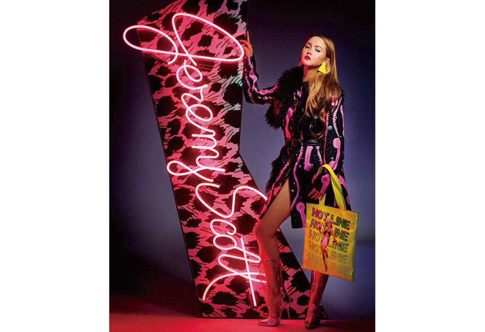 Aκολουθώντας την επιστροφή της στην πασαρέλα με το show του Moschino τον Ιουνιο, η Devon Aoki κάνει το μεγάλο της comeback με τη συλλογή του Jeremy Scott για το φθινώπορο/χειμώνα 2017. Η Aoki που είναι στενή φίλη με τον σχεδιαστή φωτογραφίζεται απο τον ίδιο τον Scott για τη νέα καμπάνια του οίκου διπλα σε ένα neon sign με το όνομα του φορώντας μια μαύρη καπαρντίνα διακοσμημένη με ροζ τηλεφωνα. Άλλη μια εκδοχή της καμπάνιας δείχνει την Aoki να φοράει ένα σύνολο που αποτελείται από δερμάτινο μπουφάν με studs και μίνι δερμάτικη φούστα στο ίδιο στυλ.