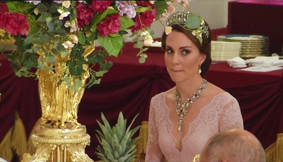 Πρώτη έφτασε η Kate Middleton, η οποία επέλεξε να φορέσει μια υπέροχη ροζ Marchesa τουαλέτα με διαμαντένιο κολιέ , μαργαριταρένια σκουλαρίκια και την τιάρα της πριγκίπισσας Diana.