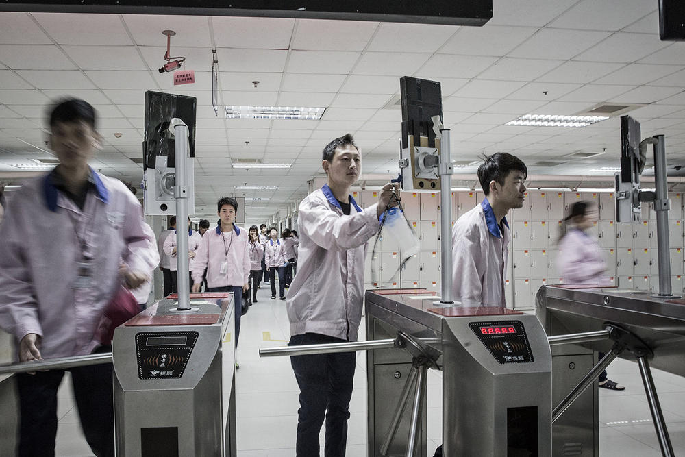 Ο πρώτος άνδρας περνάει από το σαρωτή προσώπου. Ακολουθεί ο δεύτερος που είναι σχετικά άυπνος. Και μετά έρχεται ο επόμενος και ο επόμενος μέχρι να τελειώσει η σειρά των 50.000 υπαλλήλων που πρέπει να ελεγχθούν προκειμένου να διασφαλισθεί ότι δεν εργάζονται υπερβολικές ώρες.
