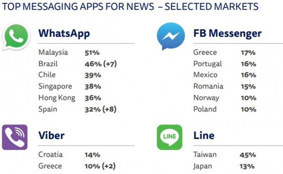 Tο Messenger ως app ενημέρωσης για ειδησεογραφία διαπρέπει στην Ελλάδα καθώς η χώρα μας είναι από τις πρώτες στον κόσμο με 17%. Άνοδο σημειώνει και το Viber.