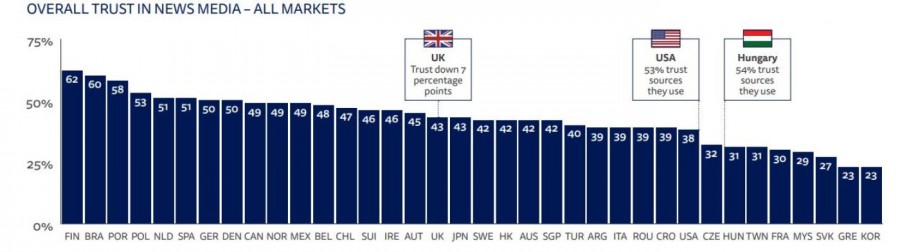 H Eλλάδα είναι η τελευταία χώρα στον κόσμο (μαζί με τη Νότια Κορέα) όσον αφορά την εμπιστοσύνη στα ενημερωτικά sites με μόλις 23%.