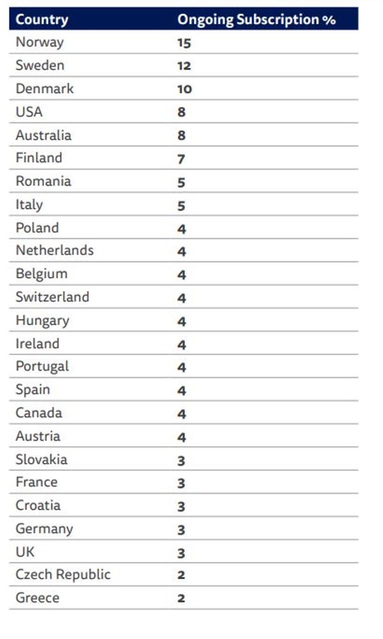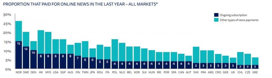 Απόδειξη της χαμηλής εκτίμησης που έχουν οι Έλληνες στα ειδησεογραφικά sites είναι ότι μόνο το 2% διατηρεί κάποια συνδρομή σε αυτά, ποσοστό που φέρνει τη χώρα μας στην τελευταία θέση αυτής της κατηγορίας
