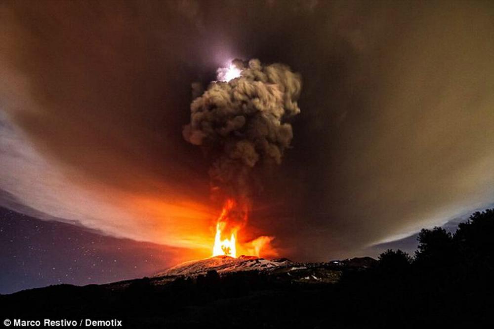 Ο ουρανός πήρε ένα κόκκινο χρώμα, τα δέντρα ίσα που ξεχώριζαν ανάμεσα στη λάβα, ενώ ο καπνός και οι κεραυνοί έδωσαν την αντίστοιχη αίγλη στην εκρηκτική αυτή στιγμή. Η έκρηξη σημειώθηκε στο κρατήρα Voragine. Οι γεωλόγοι πιστεύουν ότι ο κρατήρας ξεκίνησε τη δραστηριότητά του πριν από ένα μήνα, ωστόσο οι εκρήξεις ήταν πολύ μικρές για να φανούν με γυμνό μάτι!