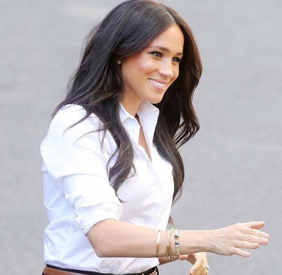 Η Μέγκαν Μαρκλ εμφανίστηκε ιδιαίτερα ανανεωμένη φορώντας τα σκουλαρίκια σε σχήμα πεταλούδας που ανήκαν στην πριγκίπισσα Νταϊάνα, καθώς και ένα λευκό πουκάμισο της Nonoo αξίας 120 λιρών, και ένα μαύρο παντελόνι Jigsaw, επίσης 120 λιρών, από την νέα της κολεξιόν. `Ηταν ίσως η πρώτη φορά που ήταν τόσο οικονομικά ντυμένη… Όσο για τα κιλά της εγκυμοσύνης… φαίνεται ότι έχει χάσει τα περισσότερα…