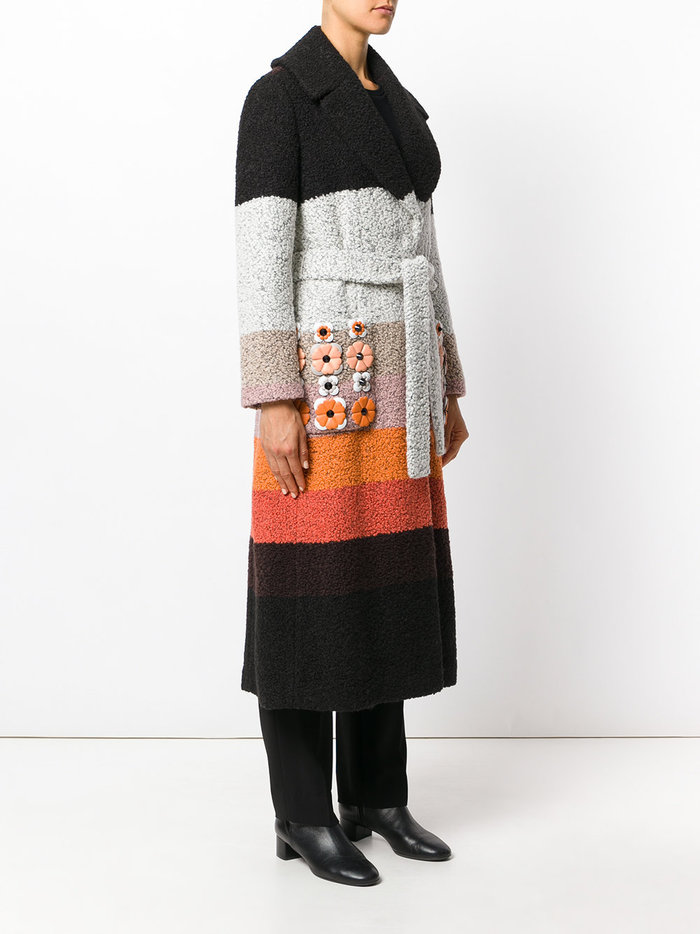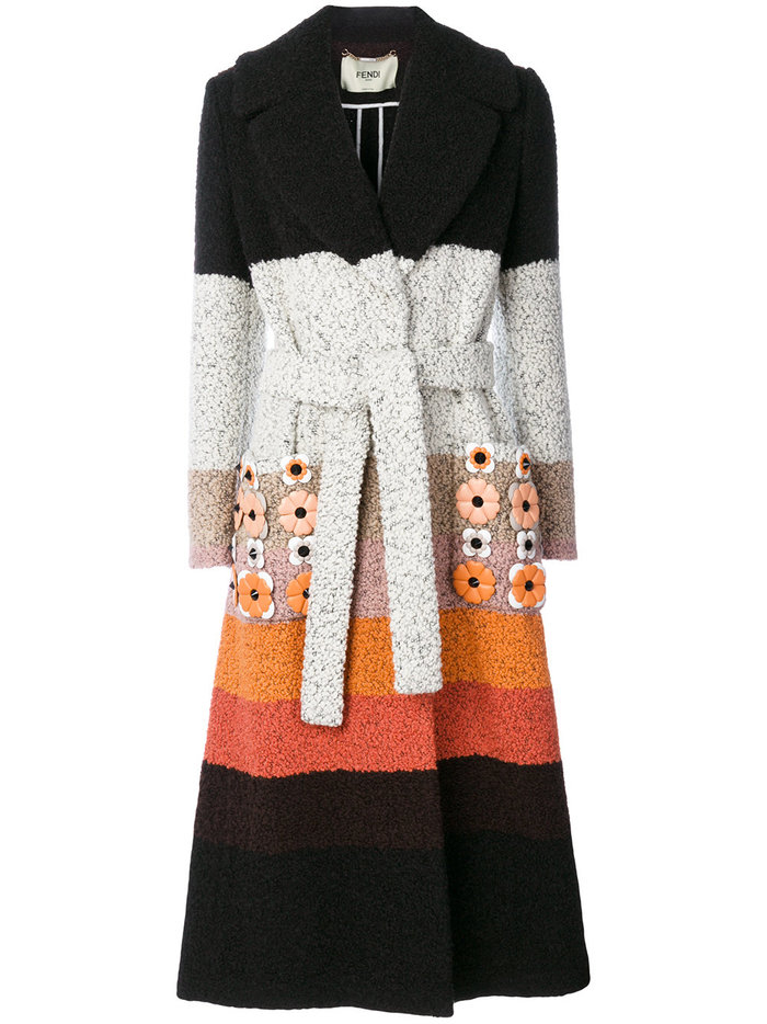 Επέλεξε να φορέσει ένα ιδιαίτερο και πολύχρωμο απλικέ παλτό Fendi, με 5 αποχρώσεις και λουλούδια στις τσέπες, σχεδιασμένο από τον Καρλ Λάγκερφελντ, αξίας 3.700 ευρώ.