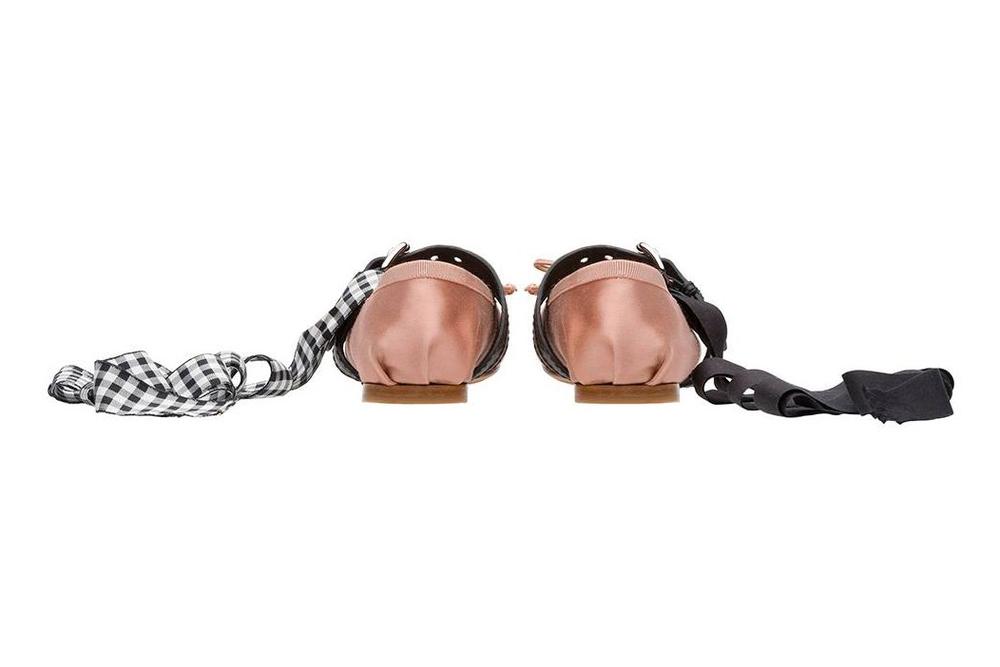 Για όσους δεν το έχουν ακόμα καταλάβει, οι μπαλαρίνες είναι στη μόδα. Γι αυτό και η Miu Miu παρουσιάζει μια παραλλαγή στο κλασσικό πουεντ δινοντας μια punk υπόσταση. Τα μοντέλα είναι σε κλασσικό σχήμα μπαλαρίνας συνδυασμένο με διπλά δερμάτινα λουριά και κορδέλες μαζί με αγκράφες για πιο άγριο λουκ. Αλλες λεπτομέρειες περιλαμβάνουν δερματινους φιόγκους, στρογγυλεμένα δαχτυλα και κεντημένη δερμάτινη σόλα. Το αποτέλεσμα ειναι punk-meets-classic σε αυτή τη συλλογή της Miu Miu για την Άνοιξη/Καλοκαίρι 2016. Η σειρά βγαίνει σε παλ ροζ, λευκό και μαύρο και είναι διαθέσιμη online.