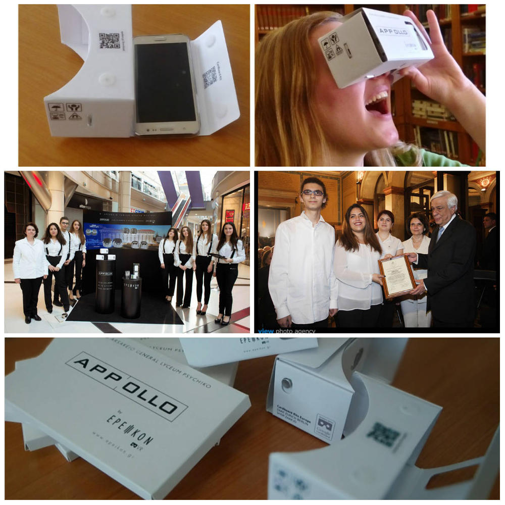 Η EPEIKON σας προσκαλεί σε ένα ταξίδι στο χρόνο µέσω του APPOLLO Συναρπαστικός συνδυασµός cardboard VR γυαλιών και εφαρµογής για smartphones.Θα μεταφερθείτε εικονικά στο Ναό του Επικούριου Απόλλωνα, μνημείο του 5ου αι.π.Χ., αναγνωρισμένο από την UNESCO. Πολυβραβευμένη καινοτόμος επιχειρηματική πρωτοβουλία ανάδειξης του ελληνικού πολιτισµού, προσέλκυσης τουρισμού και ενίσχυσης της ελληνικής οικονομίας.