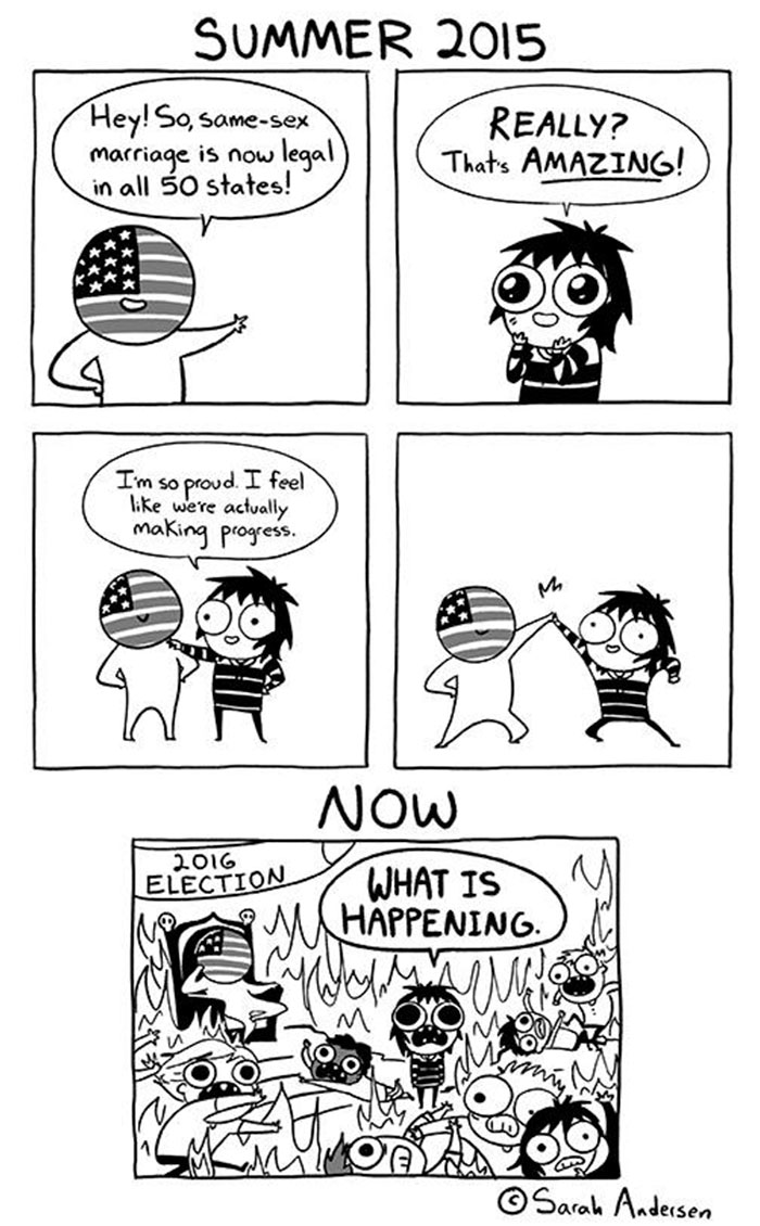 Από την Τρίτη που οριστικοποίηθηκε το αποτέλεσμα της εκλογής του Donald Trump, οι ΗΠΑ βιώνουν ένα μικρό χαμό καθώς είναι πιο διασμένοι από ποτέ αφού κυριολεκτικά οι μισοί, βάσει ψήφων, ήθελαν την Hillary Clinton και οι άλλοι μισοί τον Donald Trump.
