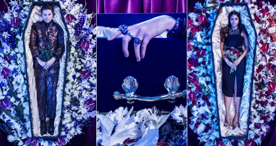 Μέχρι και η φωτογράφιση με τα μοντέλα μέσα στα φέρετρα είναι φρικιαστική και μακάβρια.