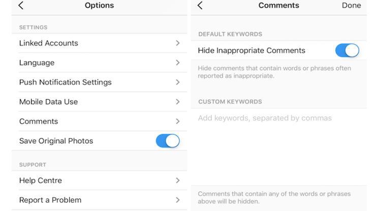 Πιο συγκεκριμένα, μέσω των ρυθμίσεων του λογαριασμού, μπορείς να επιλέξεις το Hide Inappropriate Comments με τις λέξεις που θεωρούνται ακατάλληλες να μην εμφανίζονται, ενώ υπάρχει και ανάλογο πεδίο από κάτω όπου μπορείς να σημειώσεις ποιες λέξεις θεωρείς εσύ ακατάλληλες και δε θέλεις να εμφανίζονται στα σχόλια των φωτογραφιών σου προκειμένου να γίνεται αυτόματο μπλοκάρισμα.