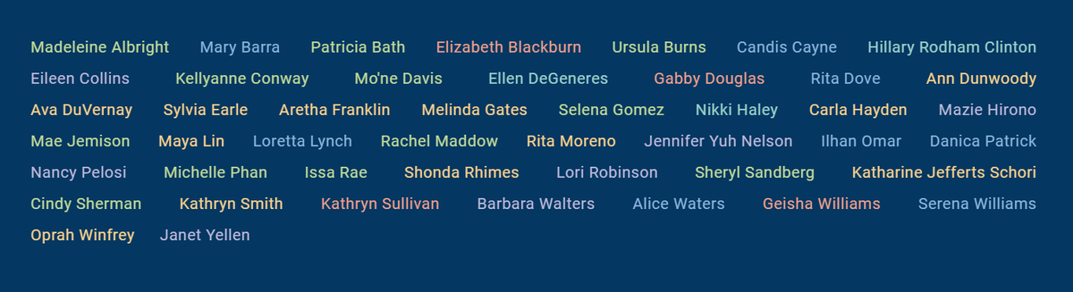 «Δεν είναι οι πιο διάσημες, ούτε οι πιο πλούσιες γυναίκες. Είναι εκείνες που έχουν ιστορία να αφηγηθεί κανείς, εκείνες που οι πορείες τους είναι διδακτικές και εμπνέουν σε πολλούς τομείς», δήλωσε η αρχισυντάκτρια του περιοδικού Nancy Gibbs.