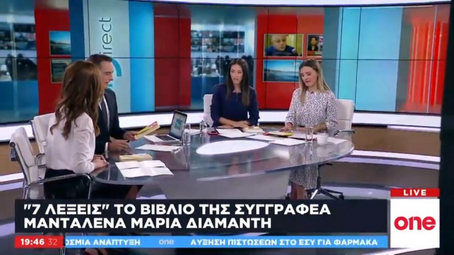 Στην εκπομπή One Direct Weekend, με παρουσιαστές τους εξαιρετικούς δημοσιογράφους : Νικήτα Κορωνάκη, Mαρία Κατσή, Ολίνα Τσαουσέλου κι αρχισυντάκρια τη Λία Λάππα, μίλησε η συγγραφέας και δημοσιογράφος Μανταλένα Μαρία Διαμάντη για το βιβλίο της «7 λέξεις που σημάδεψαν την καρδιά μου» του Εκδοτικού Οργανισμού Λιβάνη.