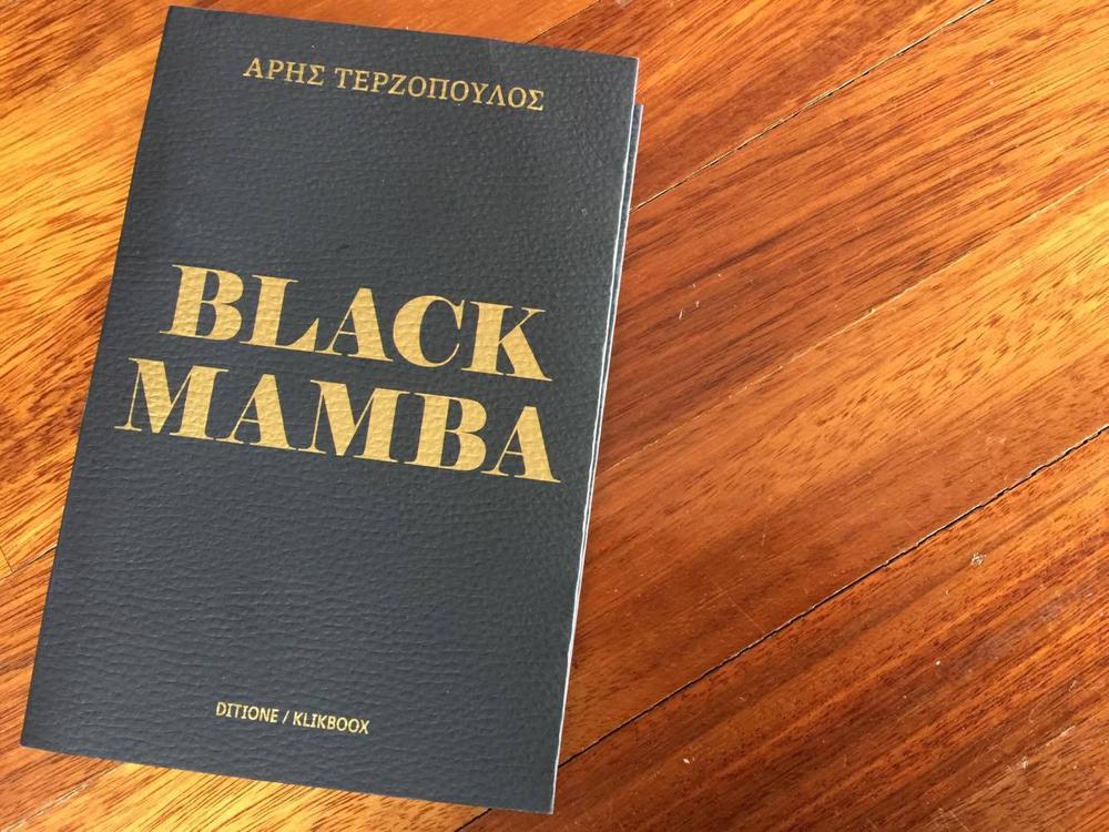 Απορίες για το “Βlack Mamba” του Άρη Τερζόπουλου, αρχίζουν να κάνουν παρέλαση στο μυαλό μου. Τί πραγματεύεται το βιβλίο, γιατί αποφάσισε να του δώσει αυτόν τον τίτλο, ποιό ήταν το κίνητρό του να το γράψει, πόσος καιρός χρειάστηκε για να το ολοκληρώσει… Κι εκείνος μαντεύοντας τις σκέψεις μου, μου λέει:“Περίμενε να το διαβάσεις και τότε με ρωτάς ό,τι θέλεις…”