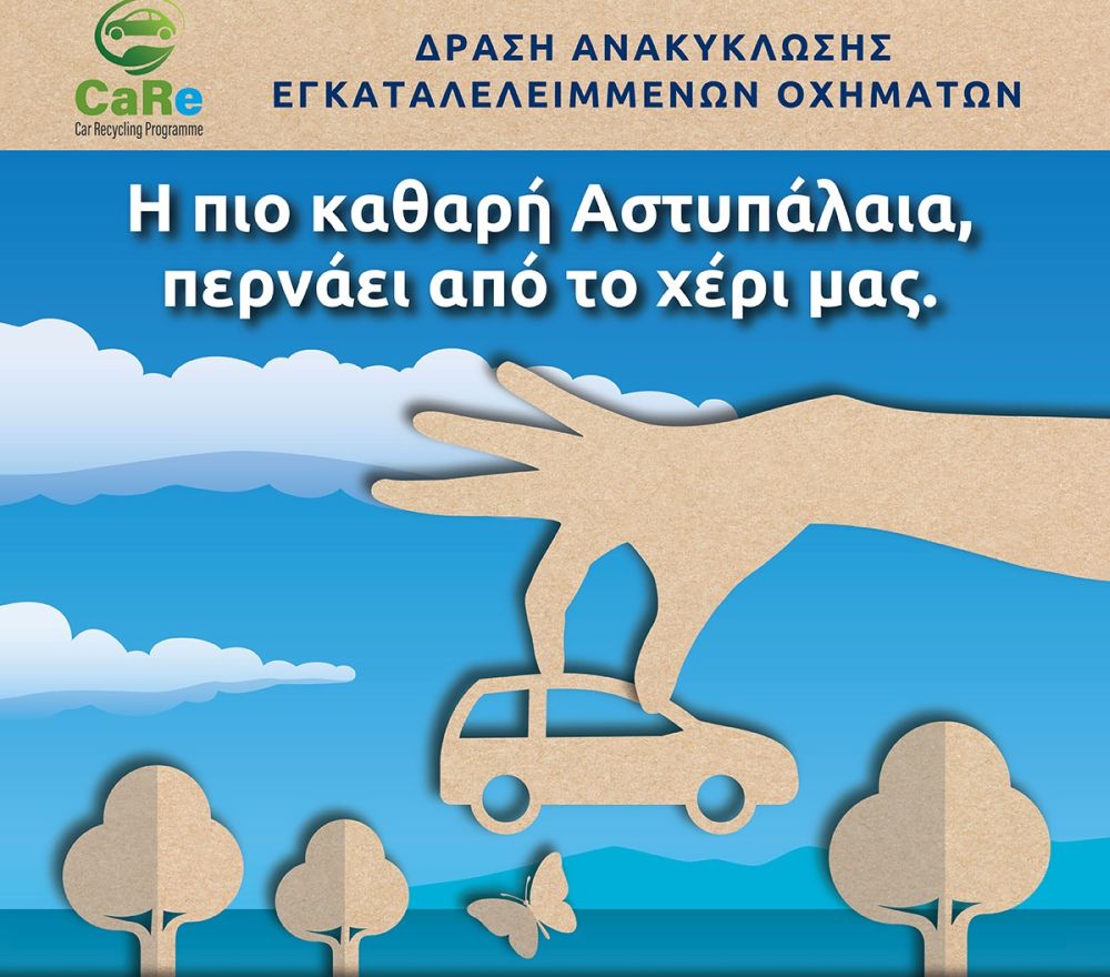 Στο πλαίσιο αυτό, ξεκινάει άμεσα μία δράση ανακύκλωσης των εγκαταλελειμμένων οχημάτων του νησιού. Με επικεφαλής τη Δημοτική Αρχή, εθελοντική συμμετοχή των κατοίκων και την αρωγή της Kosmocar-Volkswagen, τα εγκαταλελειμμένα οχήματα, διάσπαρτα σε όλο νησί, θα καταγραφούν, θα μεταφερθούν και θα συγκεντρωθούν σε συγκεκριμένο χώρο.