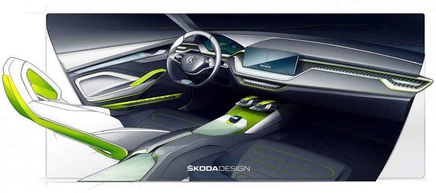 Το εσωτερικό του πρωτότυπου Skoda Vision X ορίζει μια θεμελιωδώς νέα γλώσσα σχεδίασης. Ο ευρύς, εργονομικά σχεδιασμένος πίνακας οργάνων με έγχρωμη οθόνη, δεσπόζει ως πρώτη οπτική εντύπωση στο εσωτερικό. Τα συστήματα ενημέρωσης/ψυχαγωγίας και συνδεσιμότητας μπορούν να προσπελαστούν γρήγορα και διαισθητικά μέσω της οθόνης. Τα φωτισμένα στοιχεία από κομμένο κρύσταλλο, σε συνδυασμό με την έγχρωμη οθόνη, δημιουργούν ατμοσφαιρικά εφέ φωτισμού. Το Vision X είναι το όραμα της Skoda για ένα σύγχρονο, compact crossover. Προσθέτοντας ένα εντυπωσιακό τρίτο μοντέλο στην επιτυχημένη οικογένεια των SUV της, η Skoda επιδιώκει να διευρύνει το κοινό της, αλλά και να δημιουργήσει ενθουσιασμό γύρω από το brand. Η επέκταση της γκάμας με έμφαση στην τάχιστα αναπτυσσόμενη κατηγορία των SUV, αποτελεί τον ακρογωνιαίο λίθο της στρατηγικής της μάρκας για την επόμενη δεκαετία.