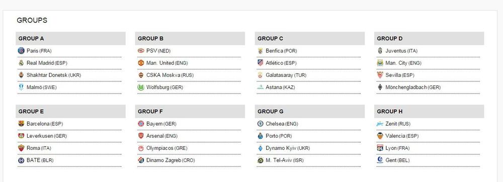 G: Τσέλσι, Πόρτο, Ντιναμό Κιέβο και Μακάμπι Τελ Αβιβ.