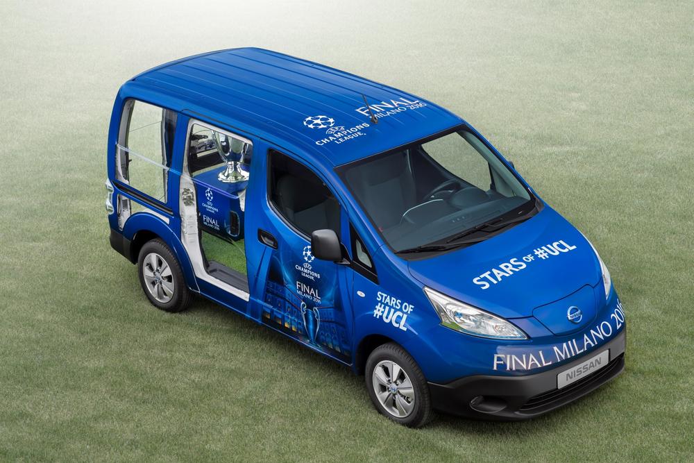 Τα συγκεκριμένα οχήματα, θα χρησιμοποιηθούν για την μεταφορά των επισήμων και των καλεσμένων της UEFA στον τελικό της διοργάνωσης, ο οποίος θα πραγματοποιηθεί στο Μιλάνο αυτό το Σαββατοκύριακο. Η Nissan θα έχει επίσης την τιμητική αποστολή της μεταφοράς του τροπαίου του UEFA Champions League, με ένα ειδικά τροποποιημένο e–NV200, στο φεστιβάλ των οπαδών του τελικού του UEFA, που θα πραγματοποιηθεί την Πέμπτη 26 Μαΐου, στο Duomo di Milano, όπου και θα παραμείνει μέχρι τον μεγάλο αγώνα. Πριν από την έναρξη του τελικού που θα διεξαχθεί το Σάββατο 28 Μαΐου, ένα μοναδικό Nissan LEAF θα μεταφέρει το τρόπαιο στο στάδιο San Siro, στο πλαίσιο του τελετουργικού του αγώνα.