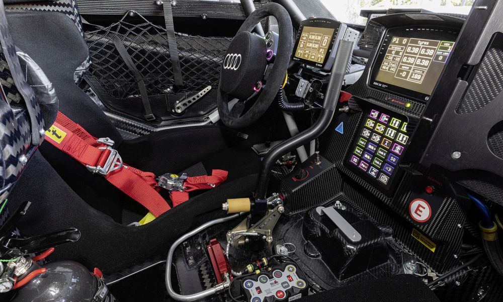 Η Audi αποκάλυψε λεπτομέρειες από το πιλοτήριο του. Κυριαρχούν οι οθόνες σε όλο το πλάτος του πίνακα οργάνων, θυμίζοντας πιλοτήριο αεροπλάνου. Στο παρελθόν, υπήρχε σαφής κατανομή των καθηκόντων στα ράλλυ cross-country: ο οδηγός οδηγεί, ο συνοδηγός πλοηγεί. Αυτοί οι ρόλοι έχουν αλλάξει εδώ και πολύ καιρό. Οι κανονισμοί πλέον περιορίζουν τις εργασίες πλοήγησης. Το πρώην χάρτινο roadbook, τώρα είναι ψηφιακό. Στο Audi RS Q e-tron, με μία νέα φιλοσοφία χειρισμού, οι ρόλοι οδηγού και συνοδηγού έχουν διαφοροποιηθεί από το παρελθόν.