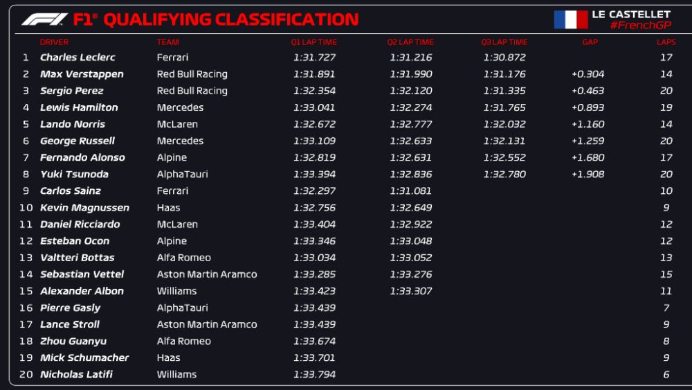 O Charles Leclerc κατέκτησε την έβδομη φετινή του pole position, επικρατώντας του Max Verstappen σε μία ακόμα εντυπωσιακή μονομαχία. Αυτή τη φορά στις κατατακτήριες δοκιμές του Grand Prix Γαλλίας, που διεξάγεται στο Le Castellet και αποτελεί τον δωδέκατο γύρο του φετινού Παγκοσμίου Πρωταθλήματος της Formula 1.