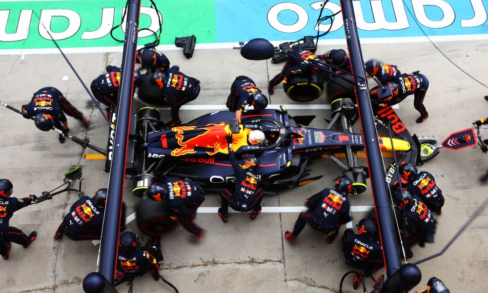 Τέταρτος ήταν ο Carlos Sainz που έχασε χρόνο στα αργά pit stop της Ferrari, με τη Red Bull του Sergio Perez σφήνα ανάμεσα στις δύο Ferrari.