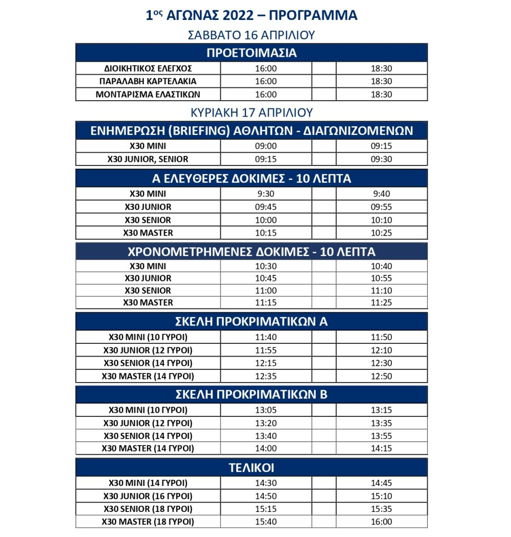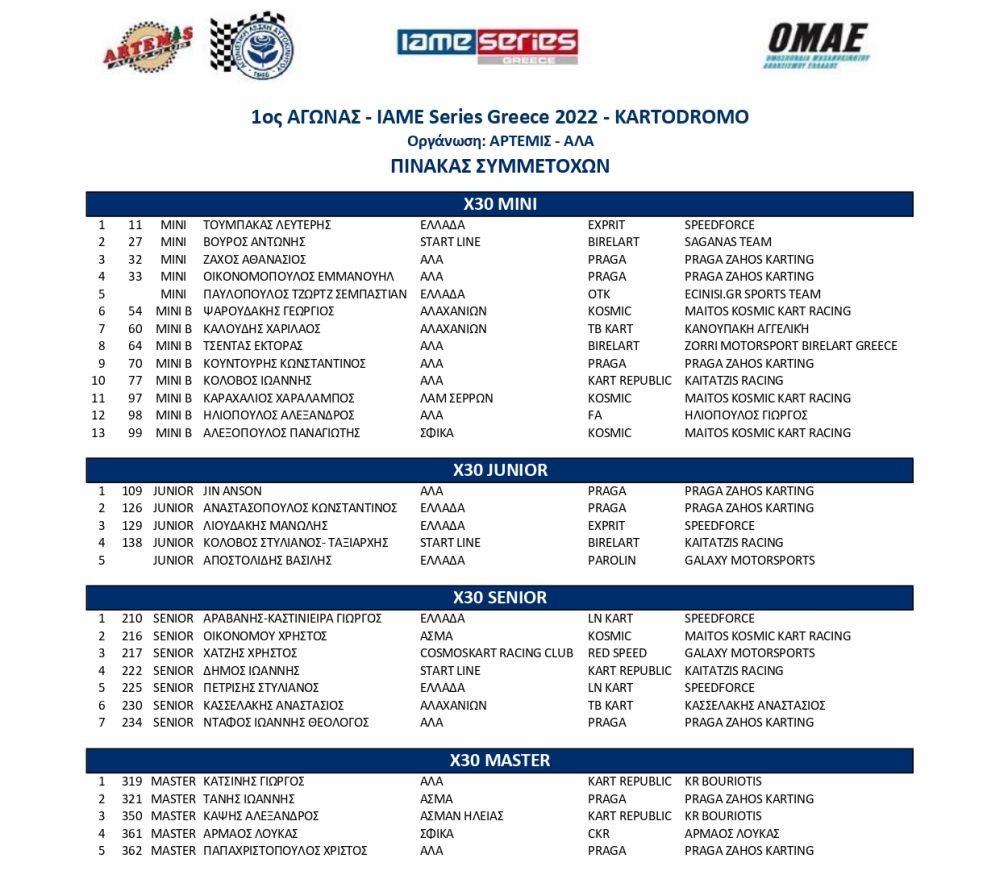 Στην X30 JUNIOR (12-14 ετών) θα διεκδικήσουν τη νίκη 5 αθλητές, ενώ η X30 SENIOR (από 14 ετών) θα έχει 7 οδηγούς στο grid.