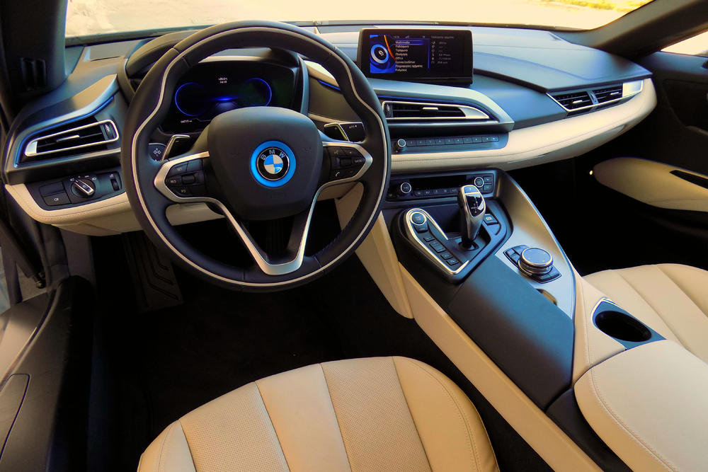 Απλά έθεσα σε λειτουργία τον κινητήρα του BMW i8. Για την ακρίβεια τον έναν από τους δύο. Τον αθόρυβο ηλεκτροκινητήρα απόδοσης 131 ίππων και 250 Nm ροπής. Και ύστερα κοίταξα τους καθρέπτες. Η αντίθεση δεν περιγράφεται. Το διαστημόπλοιο, με τα πίσω φτερά (ως προέκταση των φωτιστικών σωμάτων) να καθρεφτίζονται μόνιμα στο οπτικό σου πεδίο, κάθε φορά που θέλεις να αλλάξεις λωρίδα, την ίδια στιγμή απλά δεν ακούγεται! Ούτε καίει, ούτε ρυπαίνει, μέχρι την στιγμή που θα βυθίσεις απότομα το πόδι σου στο γκάζι και θα αναλάβει δράση ο 1.500άρης turbo βενζινοκινητήρας των 231 ίππων και 320 Nm ροπής. Συνδυαστικά τα δύο μηχανικά σύνολα αποδίδουν 362 ίππους (231+131) και μετατρέπουν το i8 σε ένα supercar για καθημερινή χρήση, καθώς μπορείς να κινηθείς εντός πόλης με άνεση και οικονομία (!!) και ανά πάσα στιγμή να μεταμορφώνεσαι σε σούπερ ήρωα που σώζει τον κόσμο, οδηγώντας πάντα το κορυφαίο αυτοκίνητο.
