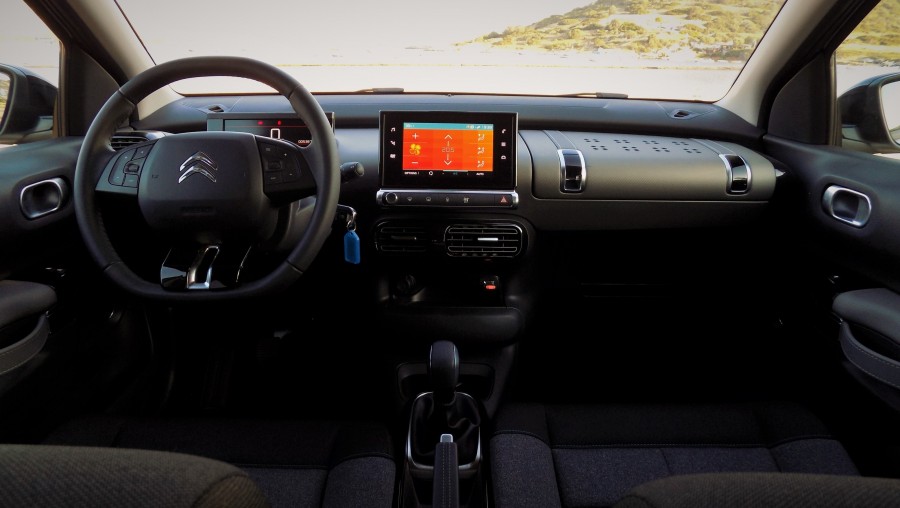 Παράλληλα, εντυπωσιακές δυνατότητες εξατομίκευσης σε συνδυασμό με την κορυφαία άνεση που χαρακτηρίζει το C4 Cactus, καθώς και υψηλού επιπέδου τεχνολογία, με κινητήρες τελευταίας γενιάς, συνθέτουν το ενδιαφέρον παζλ του γαλλικού μοντέλου. Στο εσωτερικό του σε περιμένουν αρκετές εκπλήξεις, ως επί το πλείστον ευχάριστες. Ξεκινώντας με το λιτό και απέριττο ταμπλό που γνωρίσαμε και στο πρώτο C4 Cactus, στο οποίο ξεχωρίζουν οι δύο ψηφιακές οθόνες.