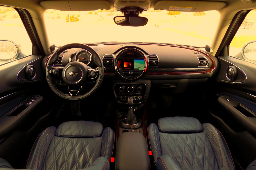Με λίγα λόγια, στην προκειμένη περίπτωση θα μπορούσα να μεταφέρω σχεδόν όλα τα υπάρχοντα μου, αν είχα σκοπό να λείψω για μεγάλο χρονικό διάστημα. Όπως επίσης θα μπορούσα να αξιοποιήσω το ευρύχωρο εσωτερικό του ακόμη και ως τόπο διαμονής! Ναι, αυτό το MINI είναι τόσο άνετο και έξυπνα διαμορφωμένο στα ενδότερα του, που κάτι τέτοιο δεν φαντάζει ως υπερβολή. Και φυσικά το κλασικό μοτίβο για κάθε MINI που σέβεται τις καταβολές του, δεν θα μπορούσε να λείπει και από τον εσωτερικό διάκοσμο του Cooper Clubman. Εντυπωσιακή κεντρική κονσόλα με την διαχρονική κυκλική οθόνη να κλέβει την παράσταση, εντυπωσιακοί χρωματικοί συνδυασμοί, δερμάτινα καθίσματα, καλής ποιότητας και συναρμογής υλικά, κοινώς ένας εξαιρετικός συνδυασμός πολυτέλειας, άνεσης και μοντέρνας εικόνας.