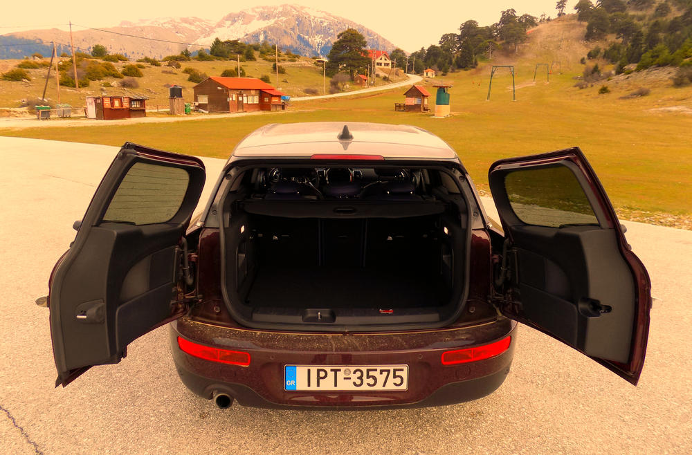 Και τα πήρα, τα βουνά. Με συντροφιά το MINI που δεν είναι ακριβώς μίνι, αλλά ήρθε για να μείνει (επανάληψη πετυχημένου λογοπαίγνιου για καλύτερη εμπέδωση). Σε αυτό το σημείο ένα εξίσου μίνι διάλειμμα, όχι για διαφημίσεις αλλά για μερικές βαρετές μεν, χρήσιμες δε, πληροφορίες για το Cooper Clubman. Βασίζεται στο πάτωμα της BMW Σειρά 2 Active Tourer και σε σχέση με το πεντάθυρο MINI είναι κατά 271 χιλιοστά πιο μακρύ, κατά 73 χιλιοστά πιο πλατύ και κατά 16 χιλιοστά ψηλότερο, αριθμοί που αμέσως επαληθεύουν το αυτονόητο στο οποίο αναφερθήκαμε παραπάνω. Παράλληλα, είναι και κατά 145 κιλά πιο βαρύ, αλλά αυτό θεωρείται λογικό με βάση τις διαστάσεις του. Επιπροσθέτως, το Cooper Clubman διαθέτει έναν χώρο αποσκευών της τάξης των 360 λίτρων ή 1.250 λίτρων αν ταξιδεύεις με τα πίσω καθίσματα αναδιπλωμένα, ενώ το κερασάκι στην τούρτα είναι ο τρόπος που αποκτάς πρόσβαση, ο οποιος είναι αυτός: