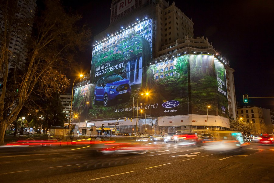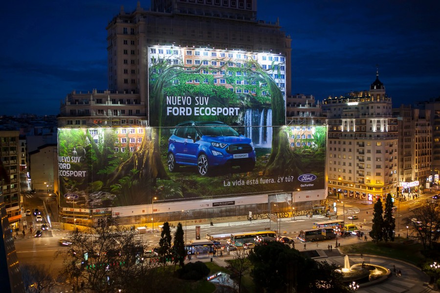 Η Ford είναι επίσημος κάτοχος τίτλου Guinness World Records για τη μεγαλύτερη γιγαντοαφίσα παγκοσμίως μετά την αποκάλυψη μιας διαφήμισης εμβαδού 5.265 τ.μ. (που αντιστοιχεί σε 20 γήπεδα του τένις) για το νέο Ford EcoSport στο εμβληματικό Espana Building στην καρδιά της Μαδρίτης. Ένας επίσημος κριτής των Guinness World Records επιθεώρησε την εγκατάσταση βάρους 2.000 κιλών και επιβεβαίωσε ότι πρόκειται για την Μεγαλύτερη γιγαντοαφίσα στο θεσμό, καταρρίπτοντας το προηγούμενο ρεκόρ το οποίο είχε καταγραφεί στο Dhahran, στη Σαουδική Αραβία, κατά 241.93 τετραγωνικά μέτρα.