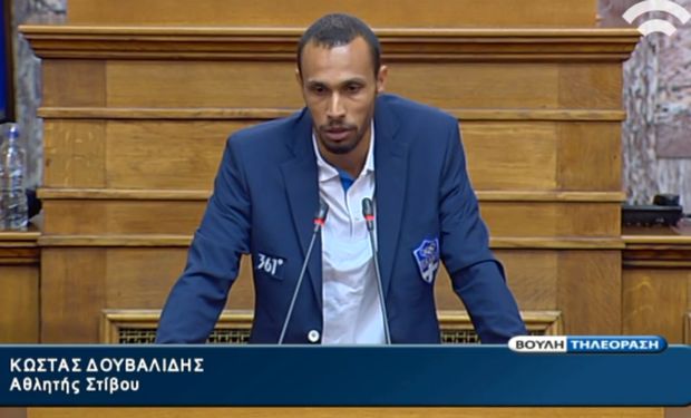 Ο επικεφαλής της Χρυσής Αυγής, Νίκος Μιχαλολιάκος, δεν χειροκρότησε τον Κώστα Δουβαλίδη, όταν ο Έλληνας εμποδιστής ανέβηκε στο βήμα της Βουλής για να μιλήσει.