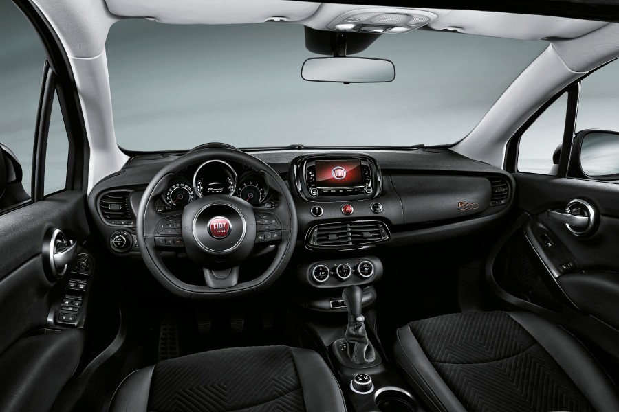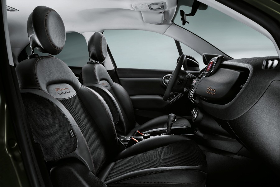 Τα σκούρα στοιχεία αναπαράγονται και στην καμπίνα του 500X S–Design, όπου δεσπόζουσα θέση κατέχει το μαύρο ταμπλό με το λογότυπο 500 σε χάλκινη απόχρωση και το κεντρικό τούνελ με σκούρα απόχρωση. Σκούρες επιχρωμιωμένες λεπτομέρειες διακρίνονται και στο τιμόνι, στα χειριστήρια ελέγχου του κλιματισμού και στο σύστημα U–Connect, ενώ σκούρα είναι και τα πάνελ των θυρών. Άλλο ένα ιδιαίτερο στοιχείο του εσωτερικού του S–Design αποτελούν τα καθίσματα από μαύρο ύφασμα με μαύρα κομμάτια από οικολογικό δέρμα και ραφές σε χάλκινο χρώμα. Με λίγα λόγια, στην έκδοση S–Design, η αδιαμφισβήτητη κομψότητα του 500X ενισχύεται περαιτέρω μέσα από τις ειδικές σύγχρονες πινελιές και τον πιο σπορ προσανατολισμό.