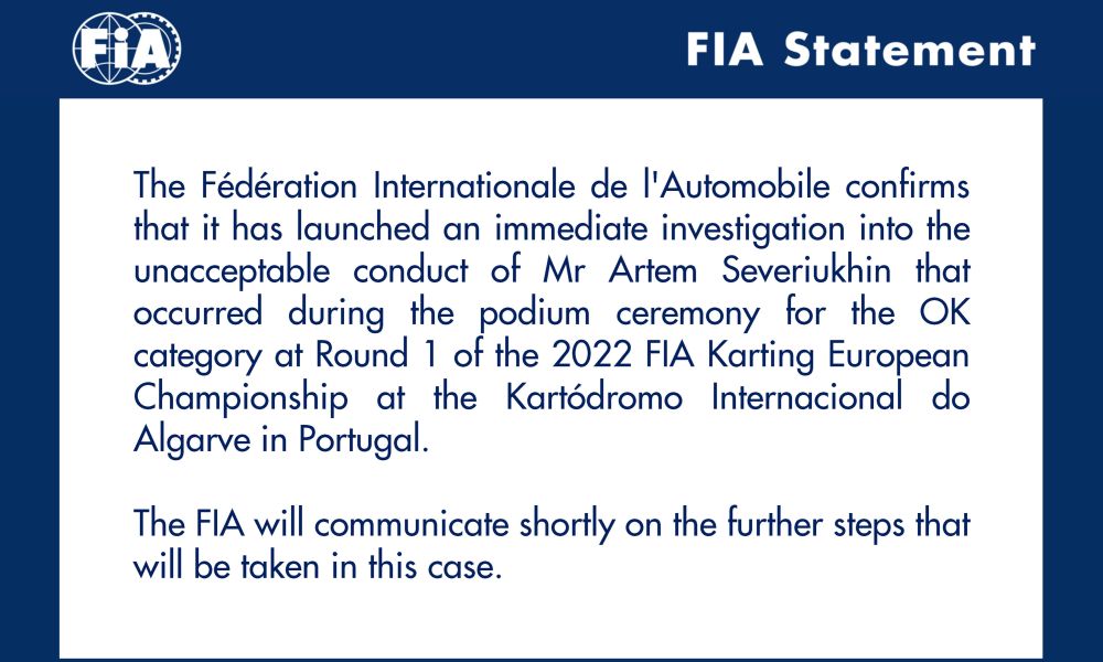 Εξέδωσε ανακοίνωση στην οποία τόνιζε τη δική της θέση κατά της Ρωσικής εισβολής στην Ουκρανία, ενώ χαρακτήρισε τα καμώματα του οδηγού της ως «….εκδηλώσεις αντιαθλητικής συμπεριφοράς, απαράδεκτης παραβίασης του ηθικού και αθλητικού κώδικα».